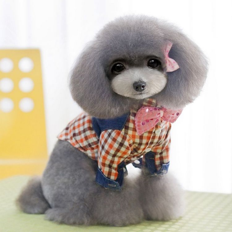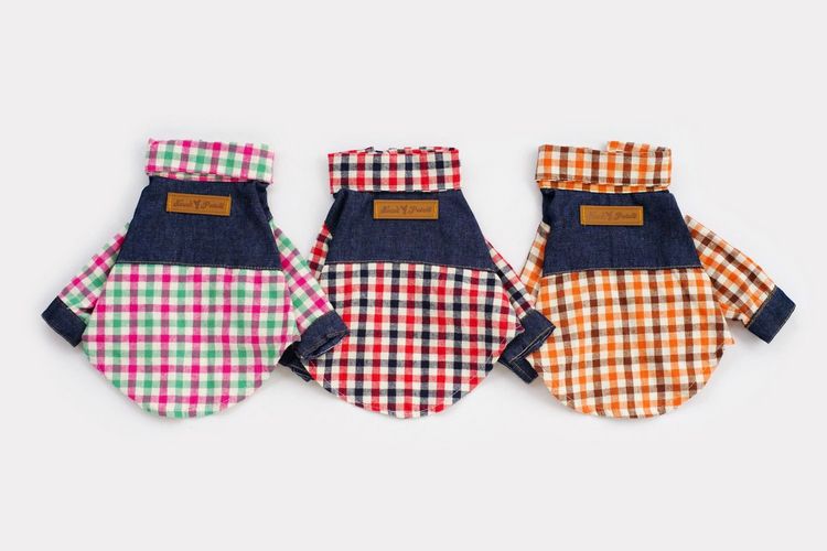 PETCOの牛仔拼格子襯衫 寵物襯衫 泰迪衣服 狗狗襯衣