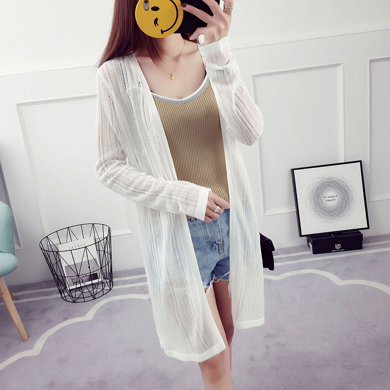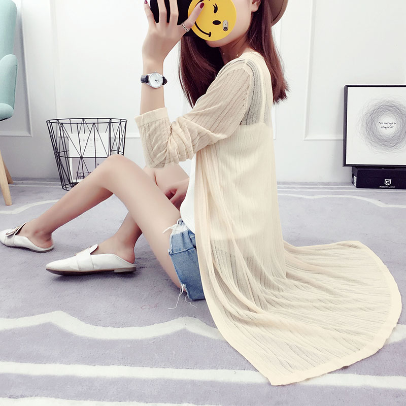 / 針織開衫女中長款長袖新款韓版外搭薄款外套夏季防曬衣空調衫
