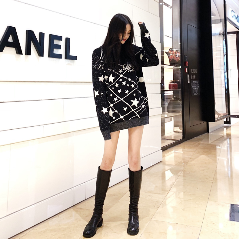 / 秋冬毛衣外套女韓版2018新款星空套頭圓領寬松顯瘦遮臀毛衣衛衣女