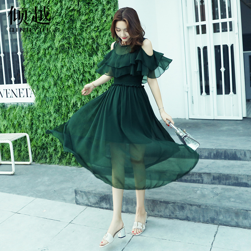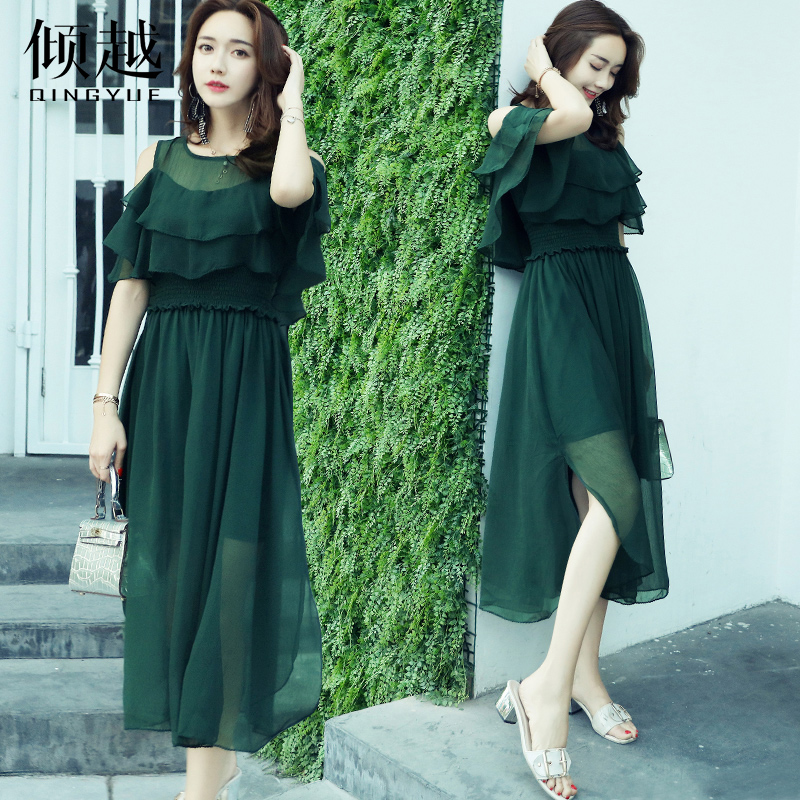 2017夏季新款短袖雪紡連衣裙韓版時尚氣質小清新長裙顯瘦柔美裙子