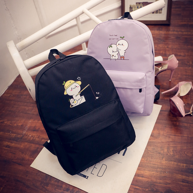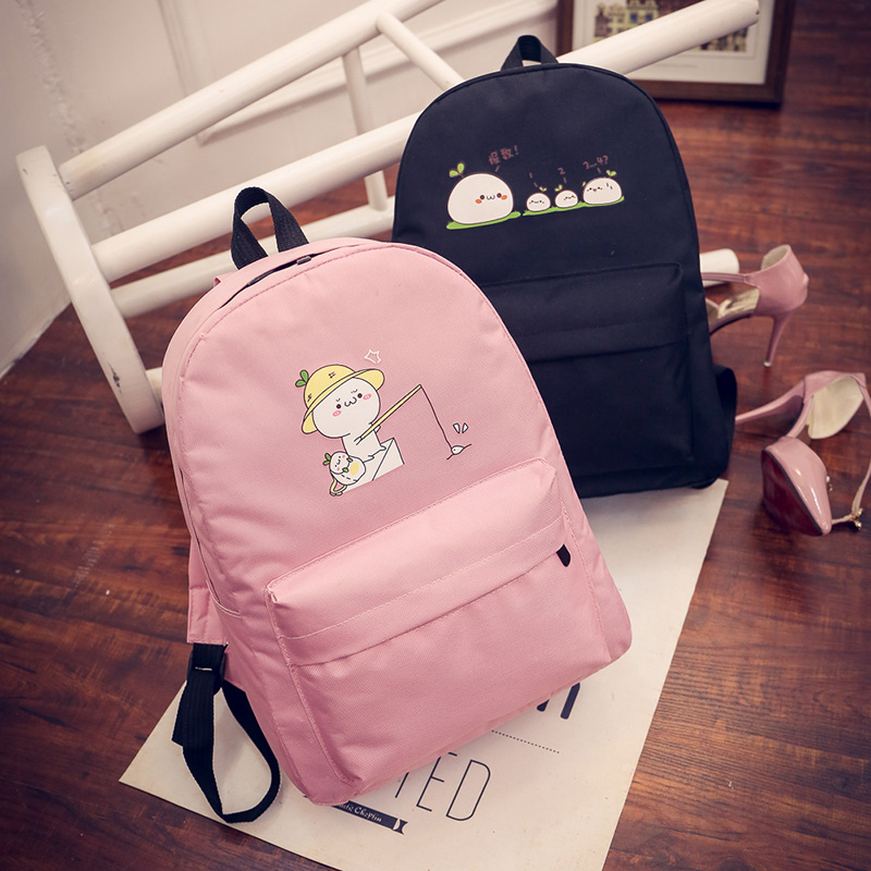 17印花田園帆布雙肩包韓版潮學生書包小清新初中生學院風背包女