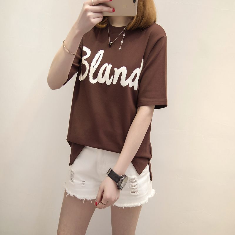 / 女裝春裝新款潮短袖t恤女寬松字母上衣女打底衫學生女士體恤
