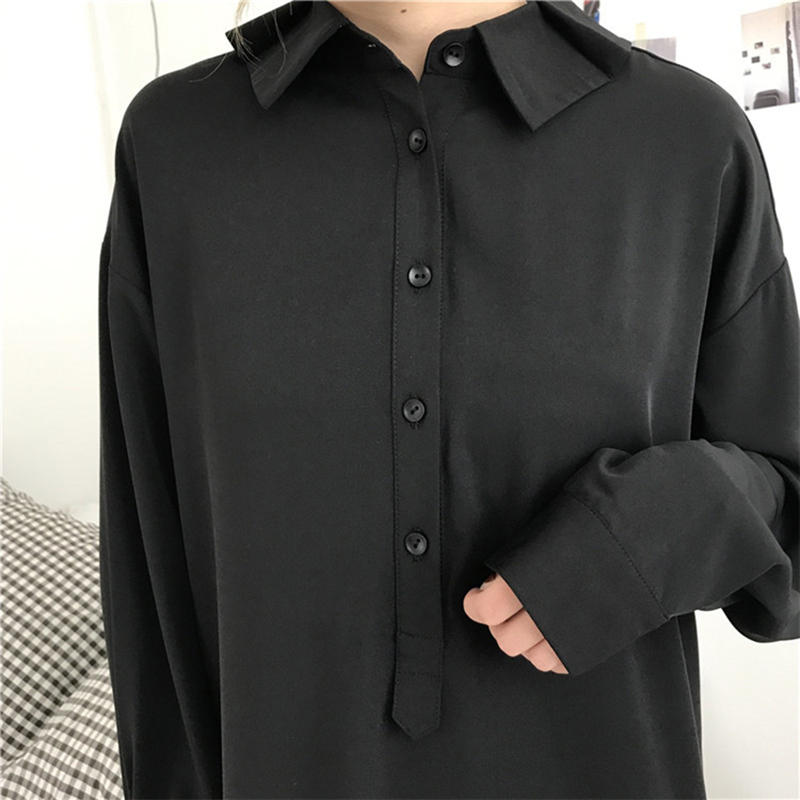 / 連衣裙秋裝2018新款女 長袖襯衫裙 寬松秋季全身裙 小黑長裙魚尾