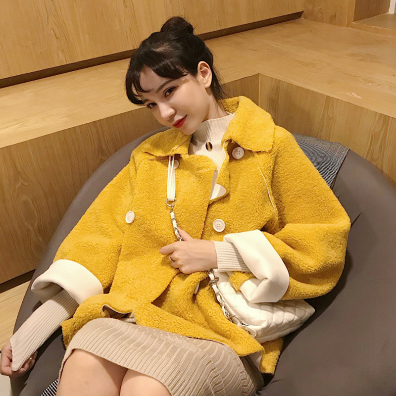 羊羔毛外套女秋冬裝2018新款韓版寬松翻領長袖開衫學生時尚夾克潮