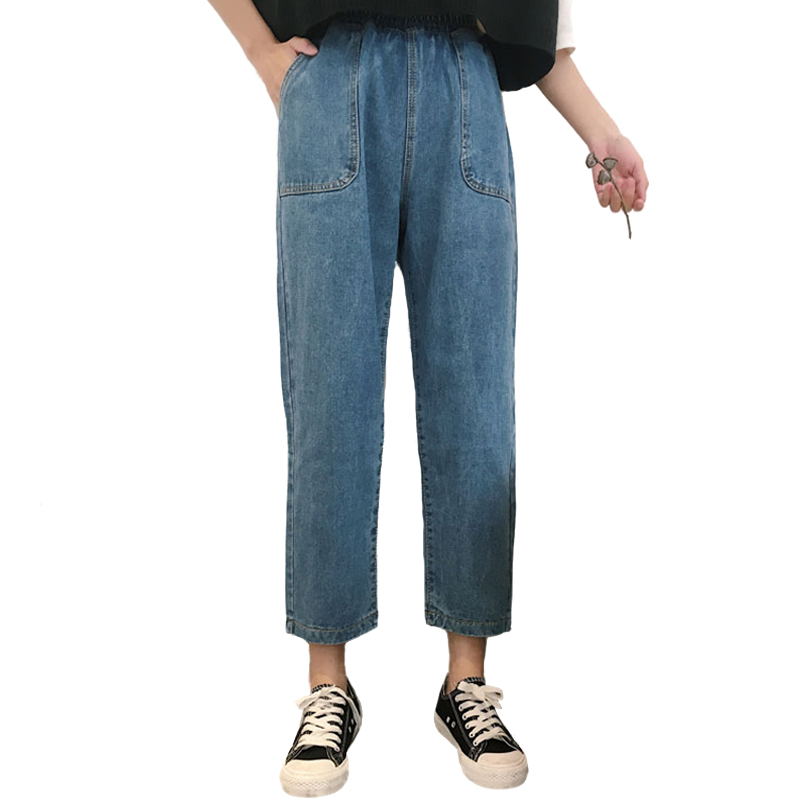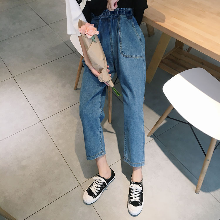 秋裝女裝韓版松緊腰直筒褲寬松九分褲學生闊腿顯瘦牛仔褲休閑褲子