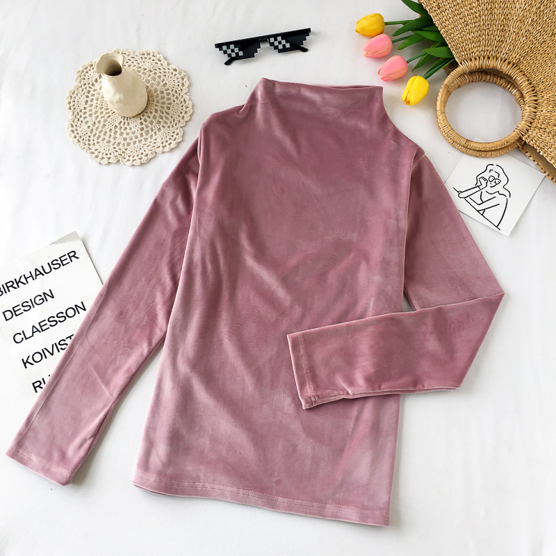 / 簡約純色半高領打底衫秋季女裝2018新款復古絲絨上衣學生長袖T恤
