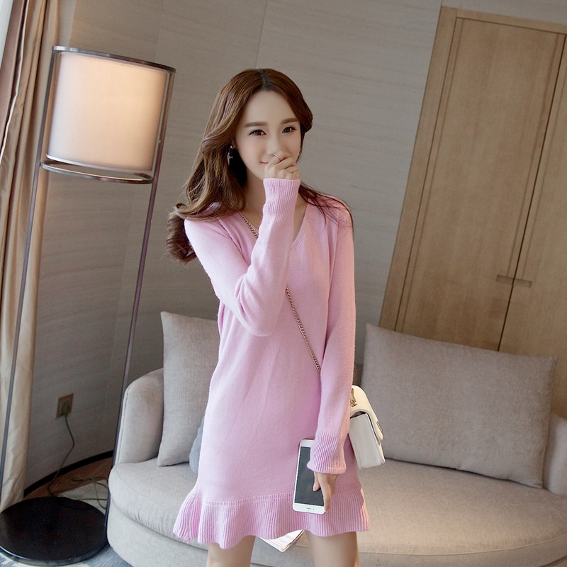 秋季女裝韓版上衣針織衫套頭女毛衣外套秋冬新款潮V領中長款