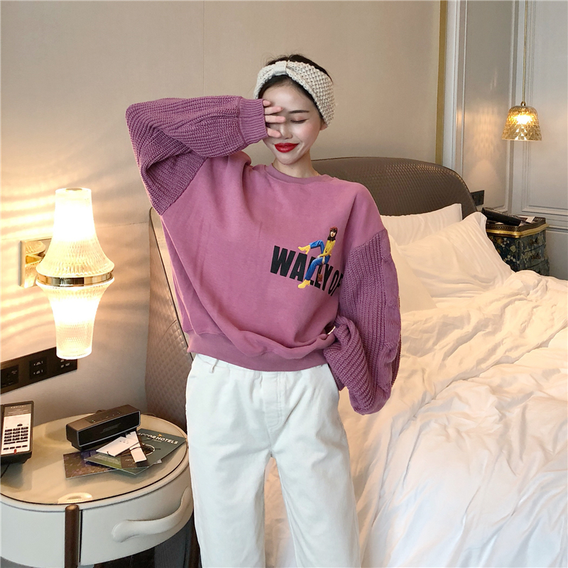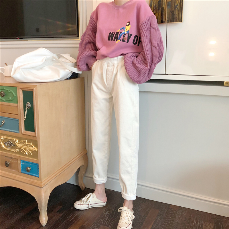 字母拼接針織燈籠袖衛衣港風時尚套裝高腰燈芯絨加絨蘿卜褲兩件套