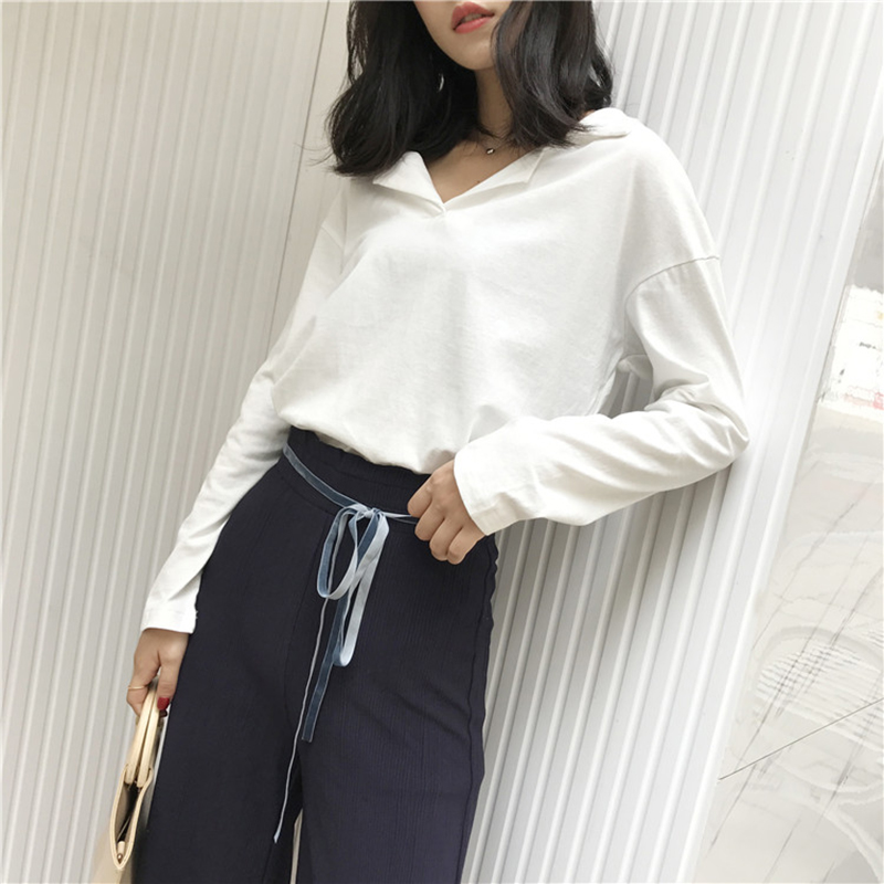 / 黑色打底衫女秋裝新款韓版西裝領長袖上衣學生寬松百搭休閑T恤衫