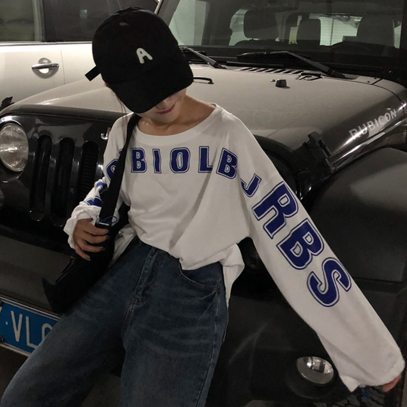 潮流女裝秋季新款韓版寬松個性字母印花長袖T恤學生慵懶休閑上衣