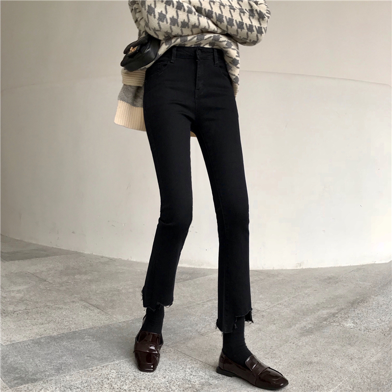 網紅同款牛仔褲女秋冬2018新款韓版顯瘦喇叭褲九分褲高腰黑色褲子