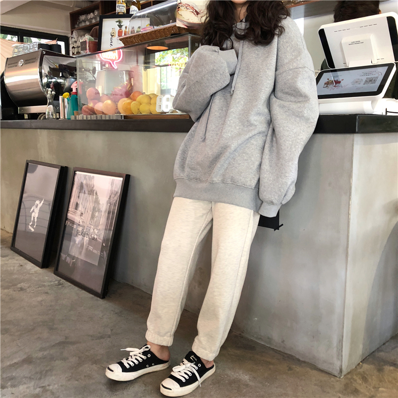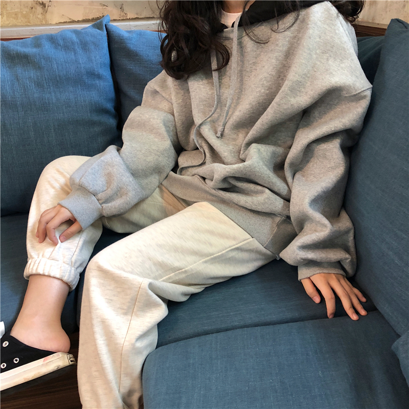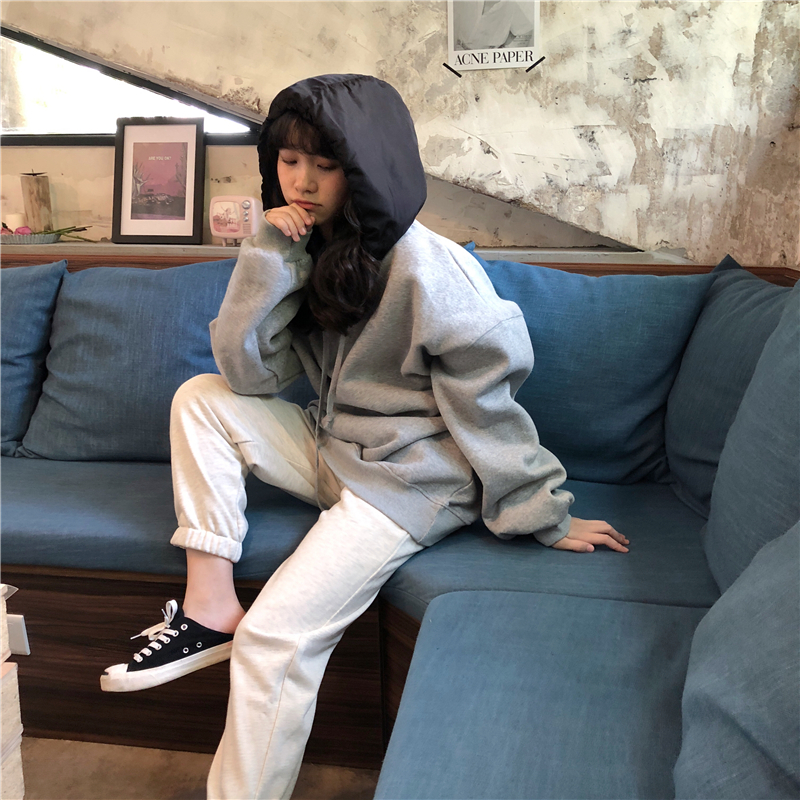 / 秋冬女裝韓版中長款慵懶風寬松加絨加厚拼接連帽套頭超火衛衣外套