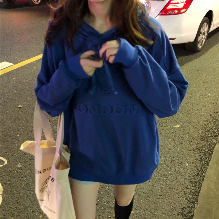 秋季韓版中長款立體字母工藝BF風寬松連帽套頭超火衛衣上衣外套女