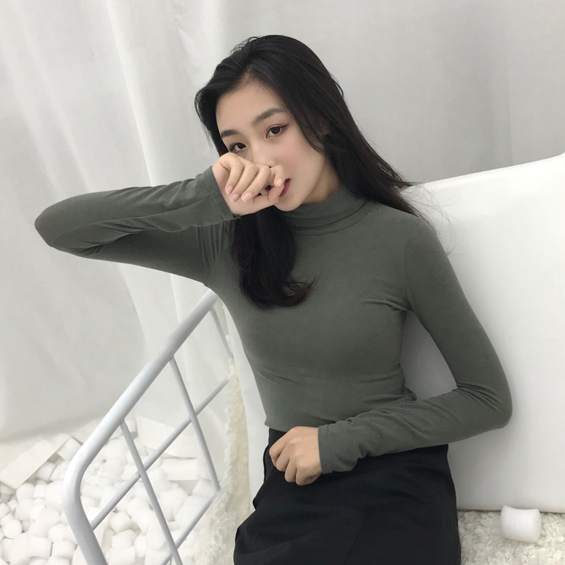 韓版秋裝女2018新款chic顯瘦長袖高領T恤打底衫彈力百搭休閑上衣