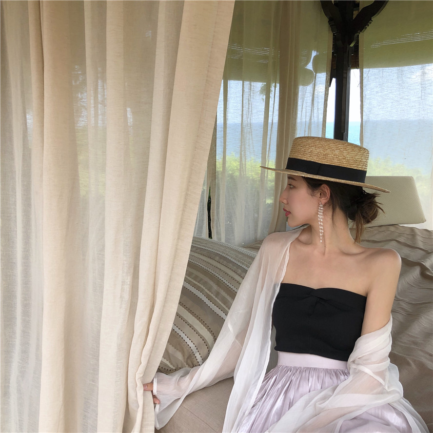 / 2018新款韓版百搭打結抹胸針織背心打底時尚純色復古chic吊帶上衣