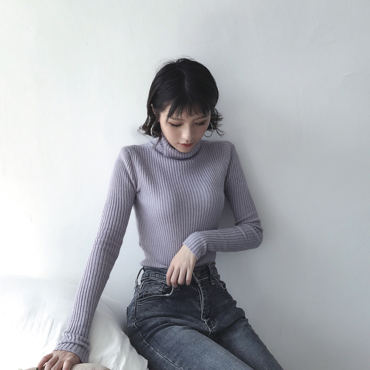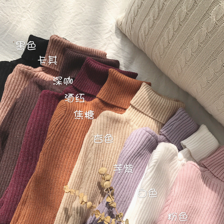 / 復古韓版chic純色高領加厚坑條打底針織衫內搭保暖毛衣女2018新款