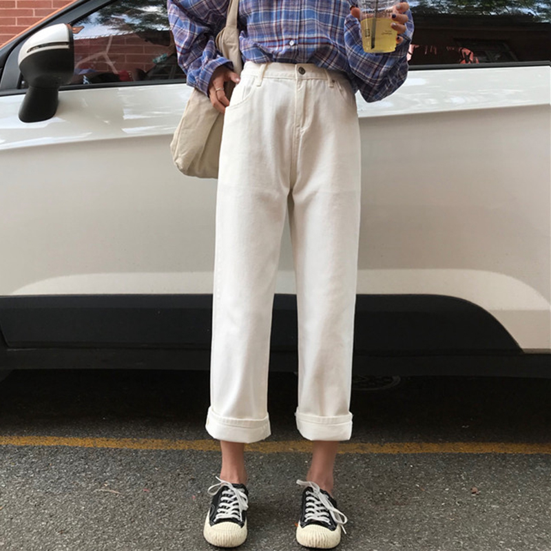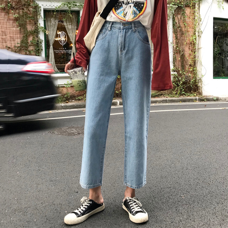 / 女裝新款復古高腰顯瘦寬松直筒褲女秋季學生韓版黑色九分牛仔褲子