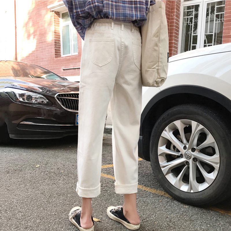 女裝新款復古高腰顯瘦寬松直筒褲女秋季學生韓版黑色九分牛仔褲子