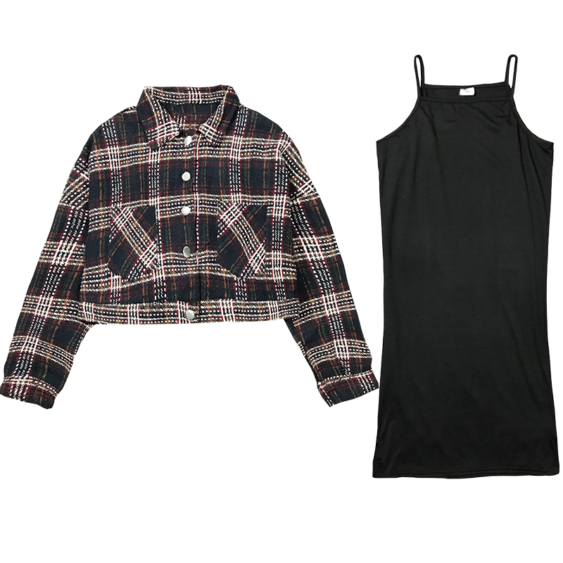 藏青格外套|黑色吊帶|灰格外套|灰色吊帶