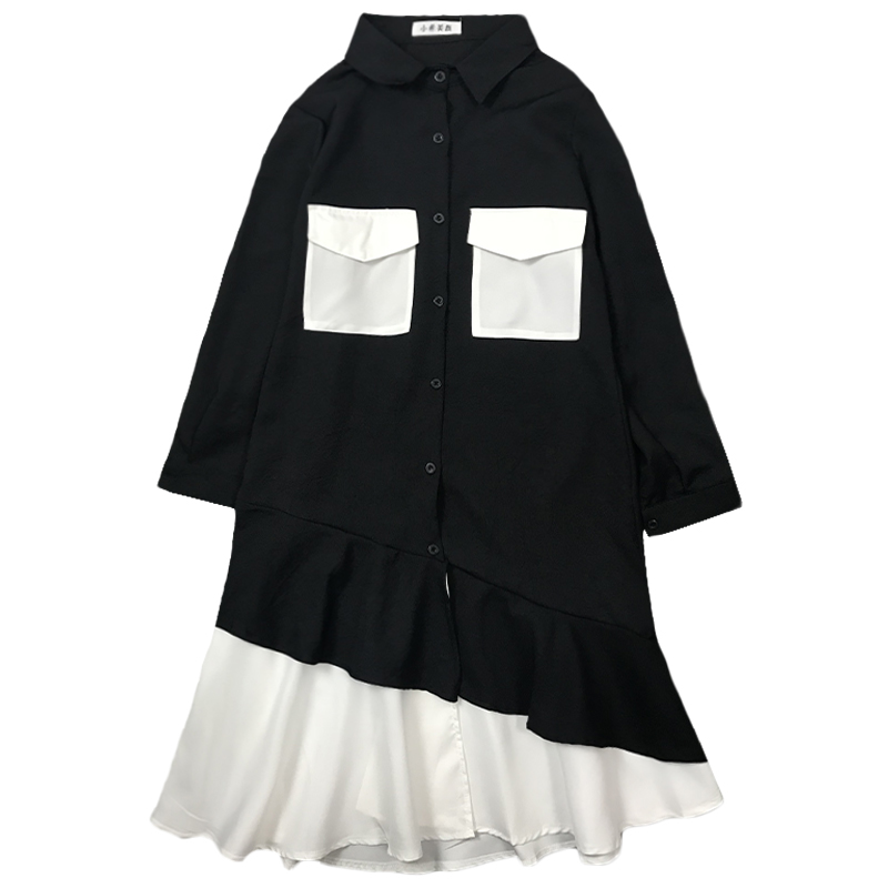 秋裝女2018新款秋季成熟風冷系女裝連衣裙子學生長袖純色長裙子