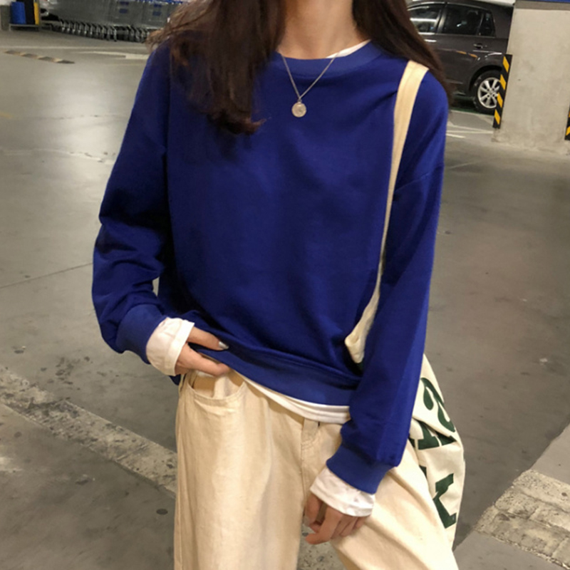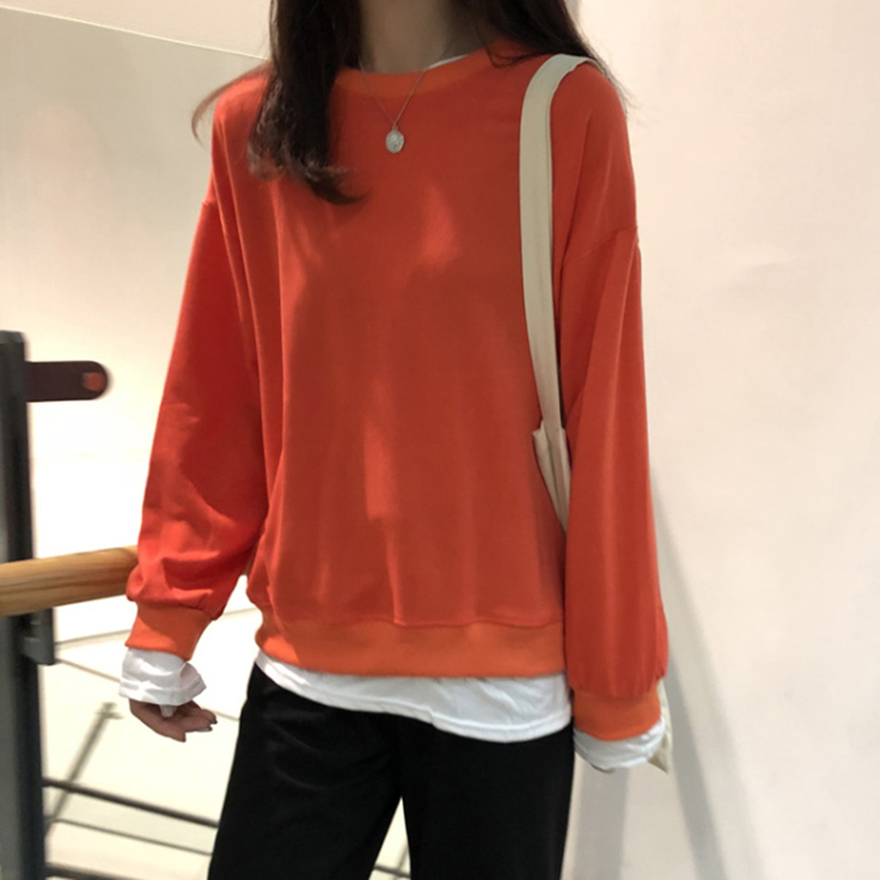 秋裝原宿假兩件慵懶風衛衣女2018新款學生韓版寬松長袖上衣套頭衫