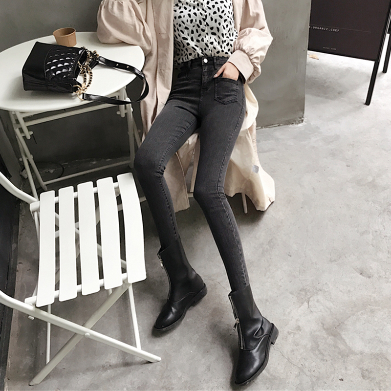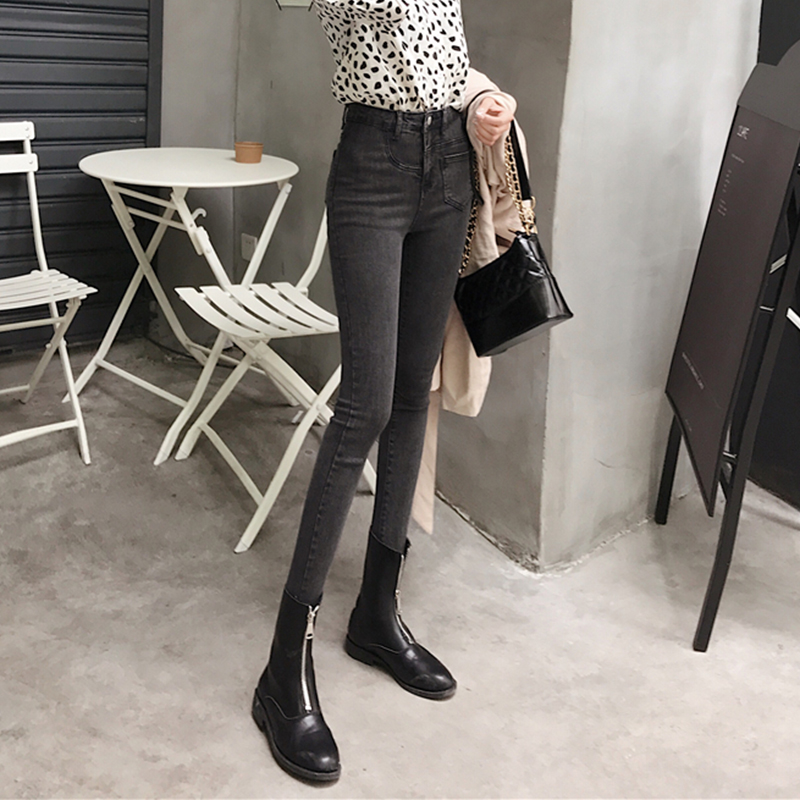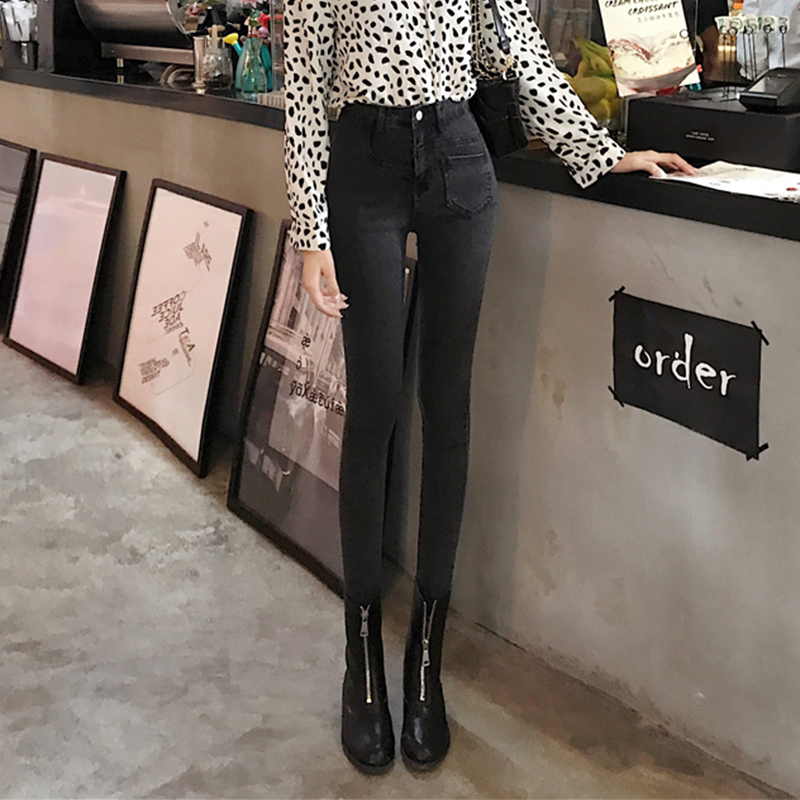 高腰彈力牛仔褲女秋冬裝2018新款韓版修身顯瘦小腳鉛筆褲九分褲子