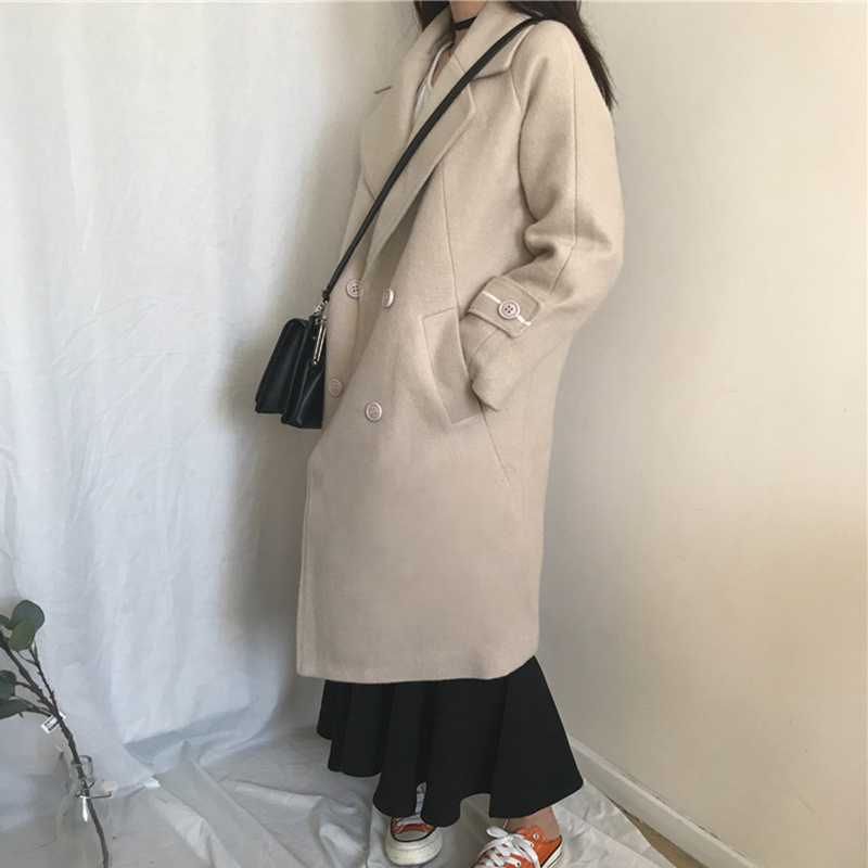 復古雙排扣毛呢外套秋裝女2018新款韓版chic明線翻領休閑開衫上衣