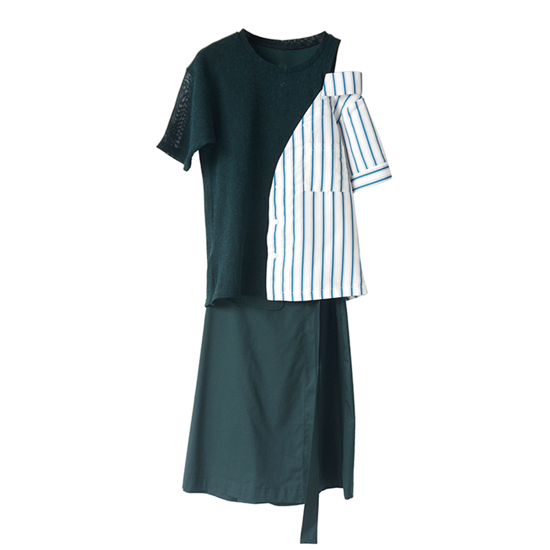 / S秀歐洲站時髦拼接針織露肩上衣顯瘦半身裙女士夏裝時裝時尚套裝