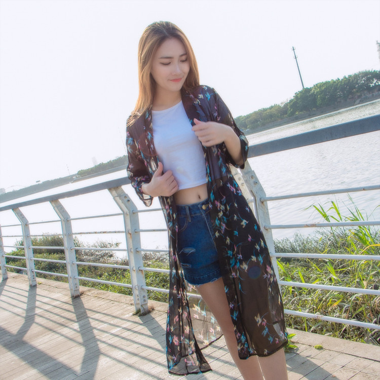 2017夏季大碼開衫超薄款中長款雪紡外套寬松百搭沙灘防曬衣披肩女