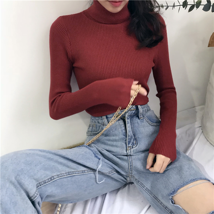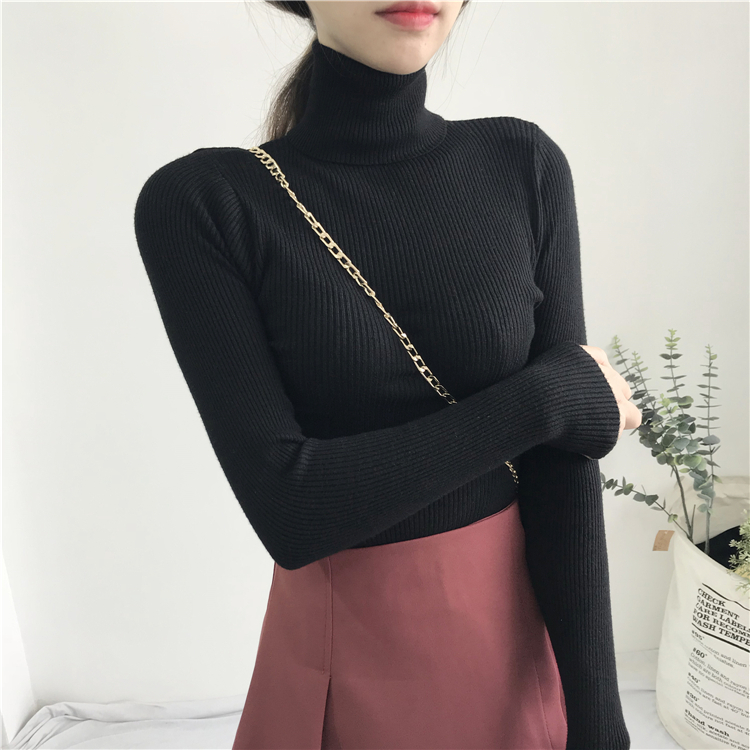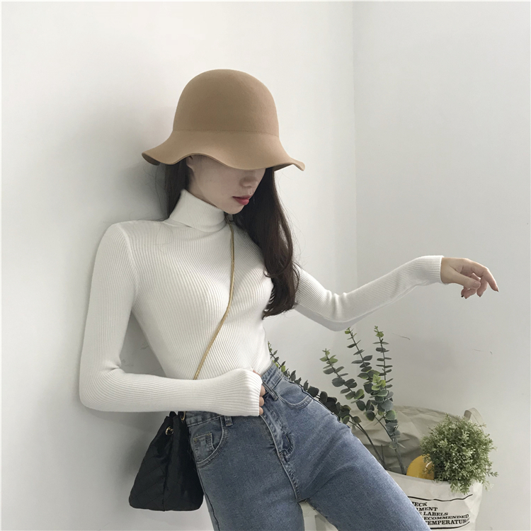 秋冬女裝韓版chic純色修身顯瘦打底衫毛衣高領網紅套頭針織衫上衣