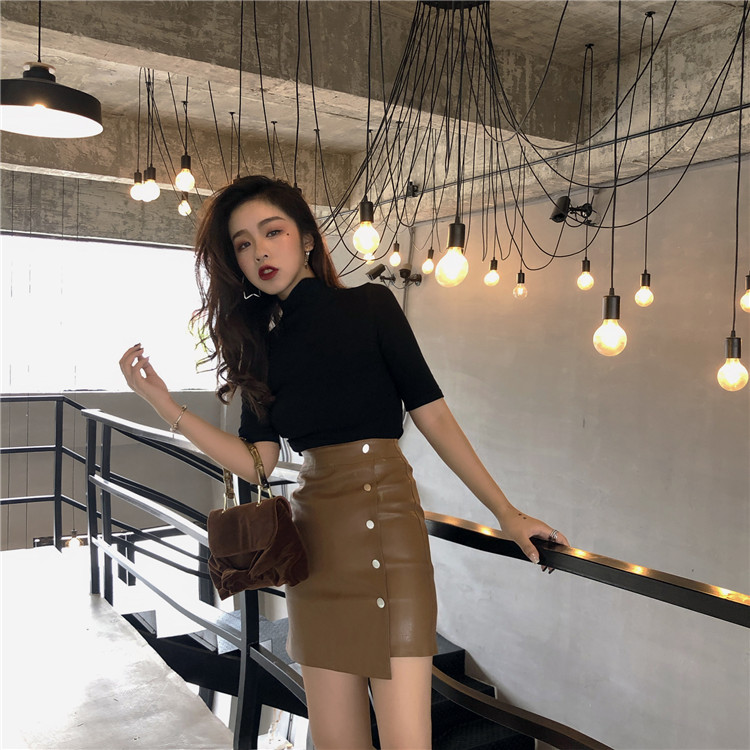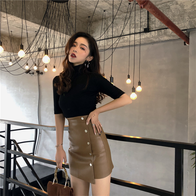 / 秋季新款復古港味韓國chic修身顯瘦高腰皮裙性感百搭排扣PU皮短裙
