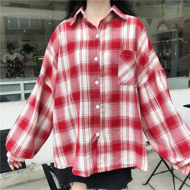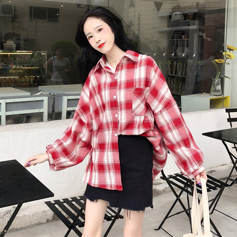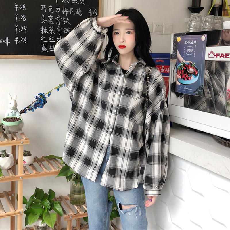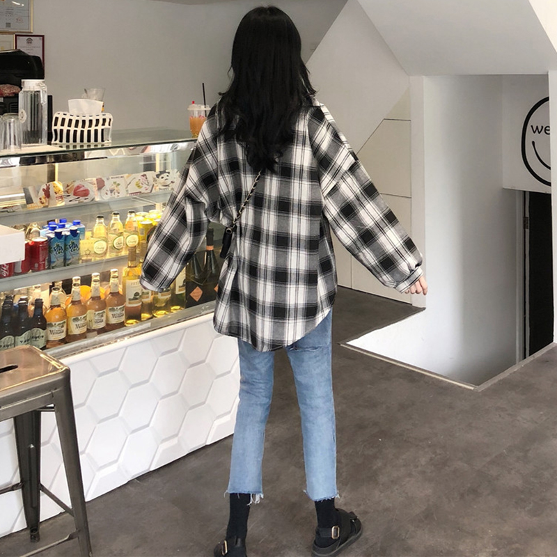 / 港風格子襯衫外套女復古秋裝2018新款polo衫女可愛韓版中長款上衣