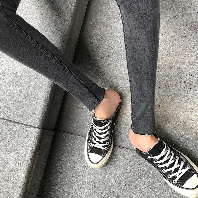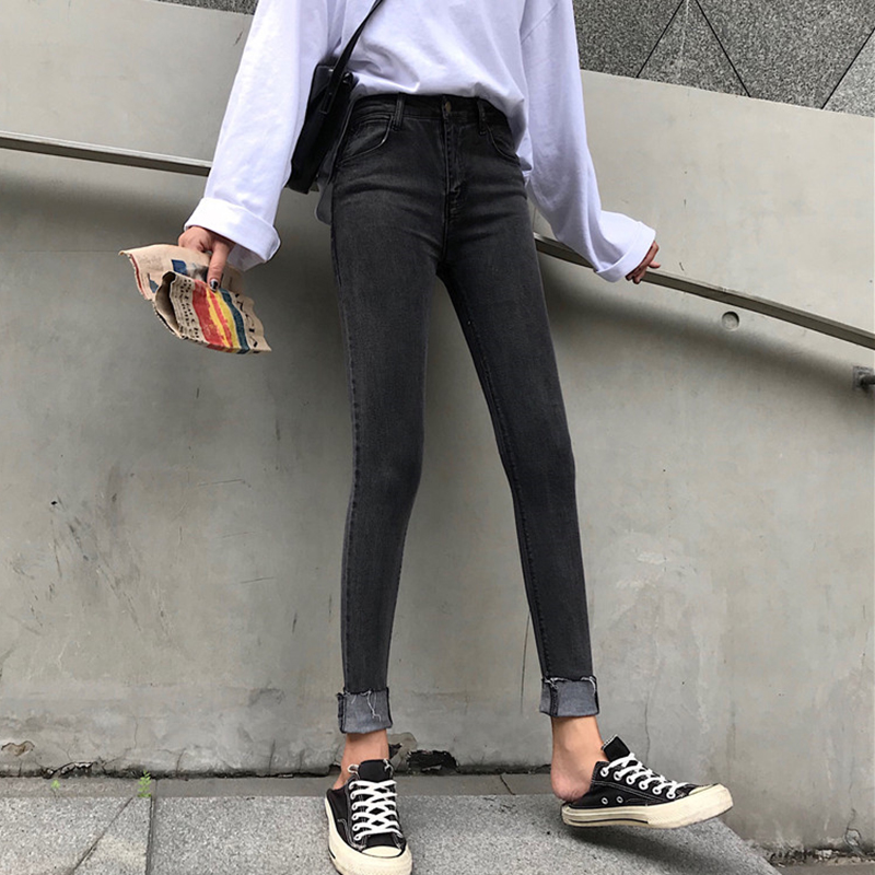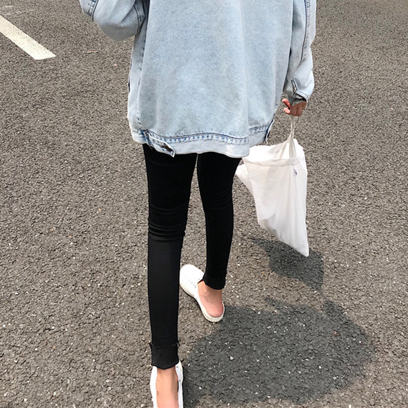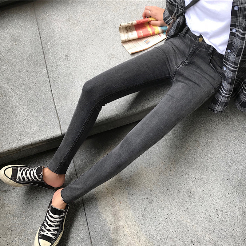 / 打底牛仔褲女秋新款韓版修身彈力九分緊身褲子高腰黑色小腳鉛筆褲