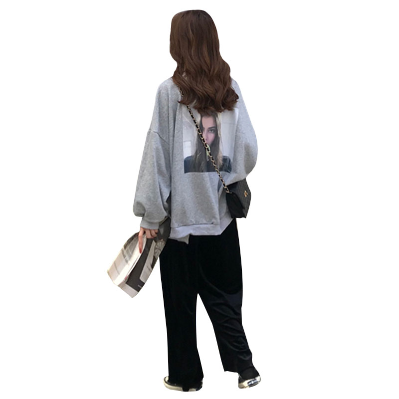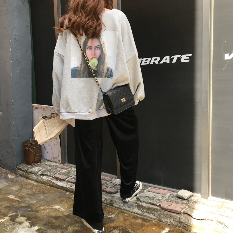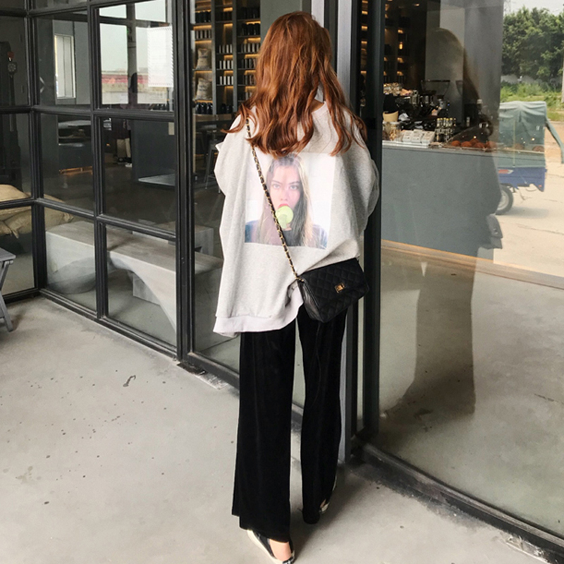/ 秋季女裝韓版時尚休閑套裝中長款原宿風衛衣+金絲絨闊腿褲兩件套