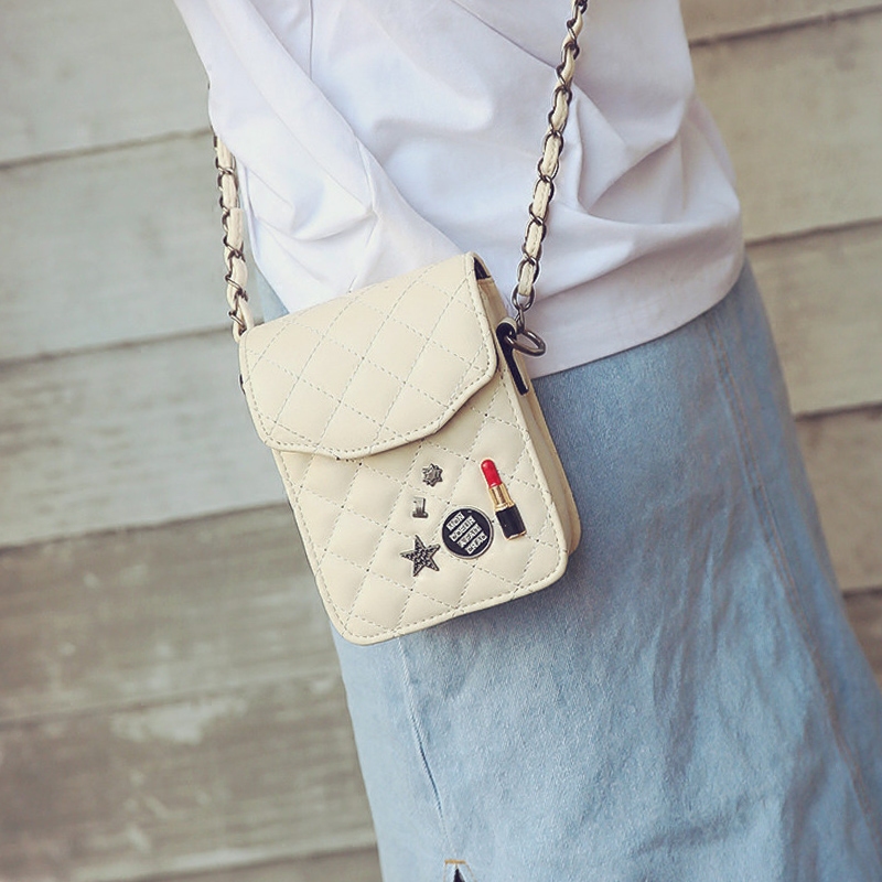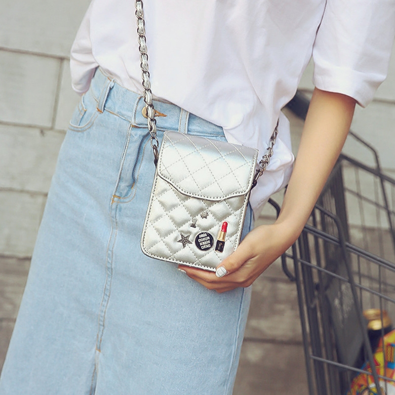 包包女新款潮菱格鏈條手機包韓版斜挎迷你小方包單肩女包小包