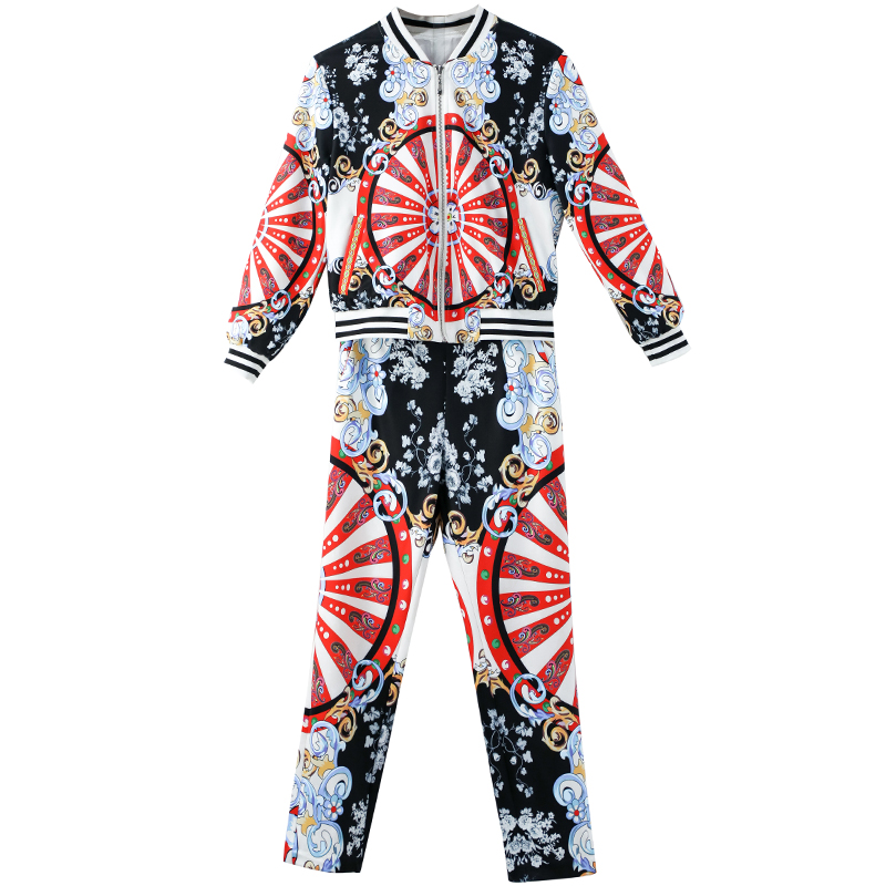 / 時尚運動套裝春秋長袖運動服韓版印花夾克修身顯瘦小腳褲女兩件套