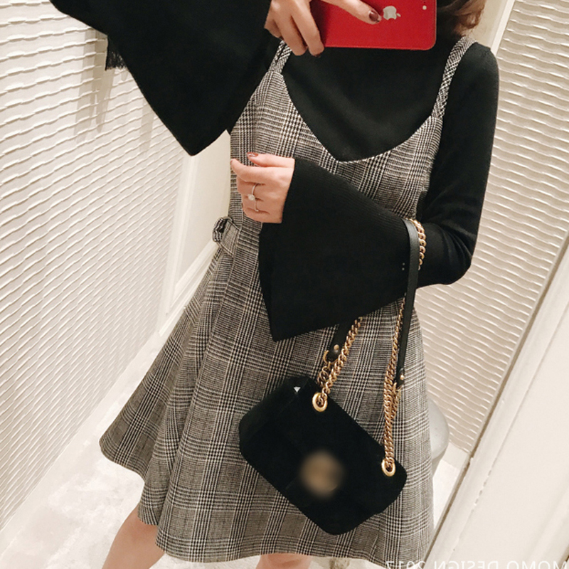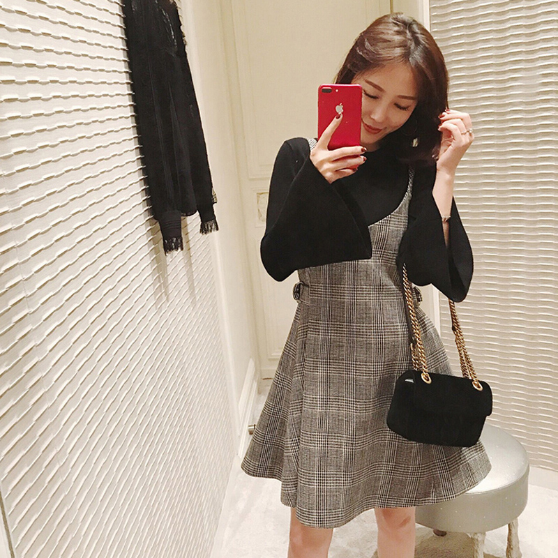 秋裝女2018新款連衣裙法式少女裙子俏皮早秋裙網紅兩件套裝女神季