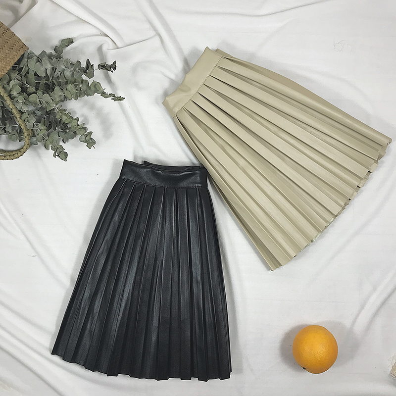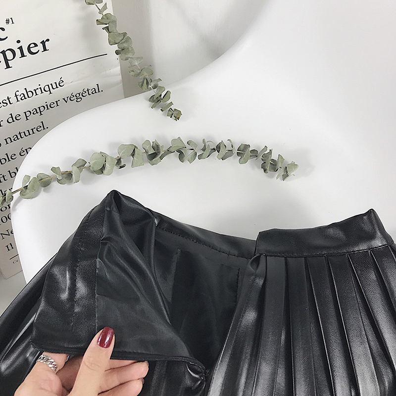 裙子女冬裝2018新款韓版高腰顯瘦百褶裙學生寬松a字半身裙皮短裙