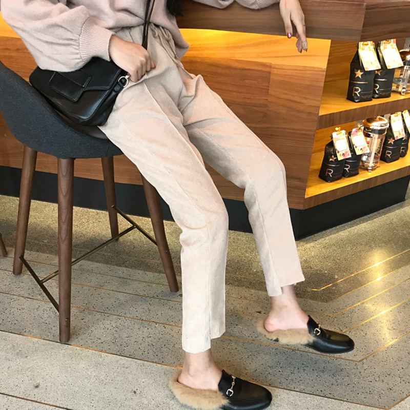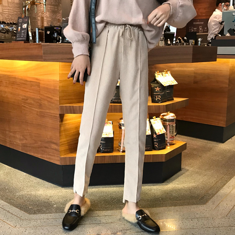 / 燈芯絨高腰顯瘦休閑褲女秋冬裝2018新款學生復古寬松哈倫褲長褲子