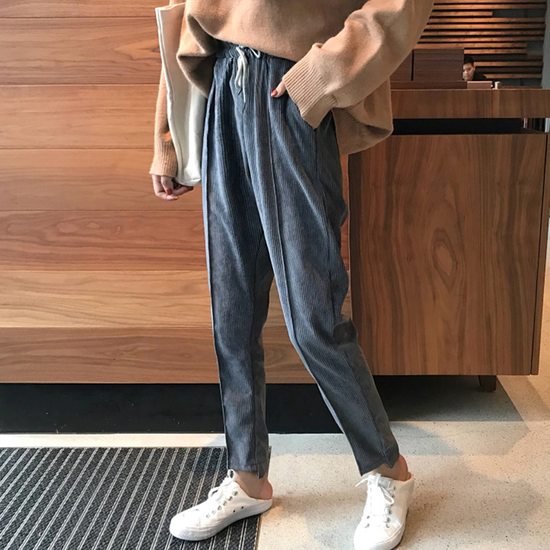 燈芯絨高腰顯瘦休閑褲女秋冬裝2018新款學生復古寬松哈倫褲長褲子