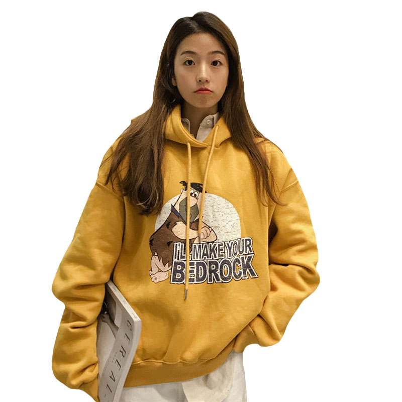/ 秋冬韓版中長款原宿風寬松字母卡通慵懶風連帽加絨超火衛衣外套女
