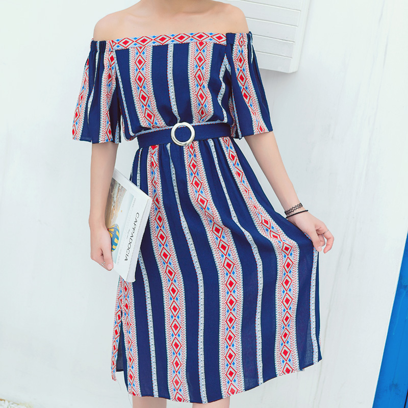 長裙的款式,裙擺采用了拼接的設計 搭配棉質面料,飄逸自然