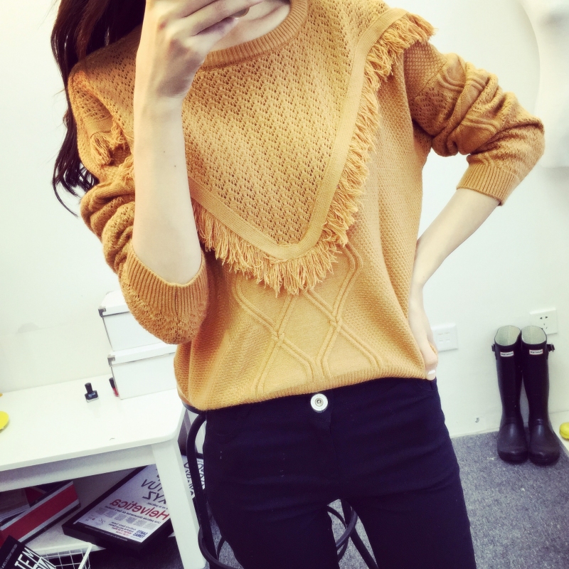 / 秋裝新款韓版女裝流蘇套頭純色圓領上衣針織衫毛衣女