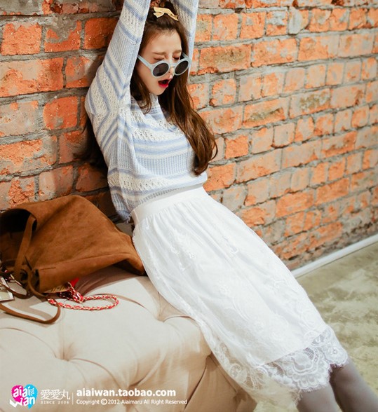 / 2017春夏新款 必備韓版甜美蕾絲花邊松緊腰凈色半身裙百褶裙包郵