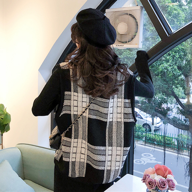 / 時尚套裝女秋冬新款復古格子V領毛呢馬甲外套高領修身針織連衣裙