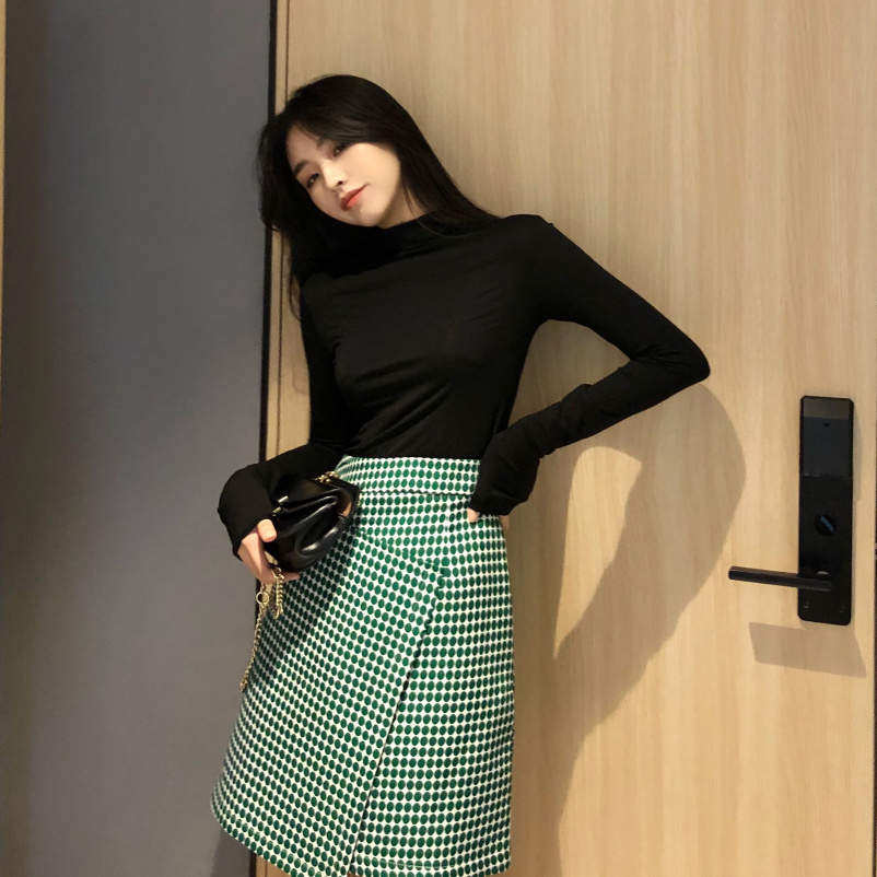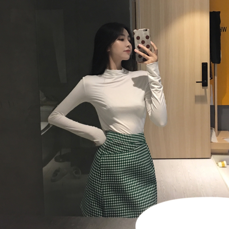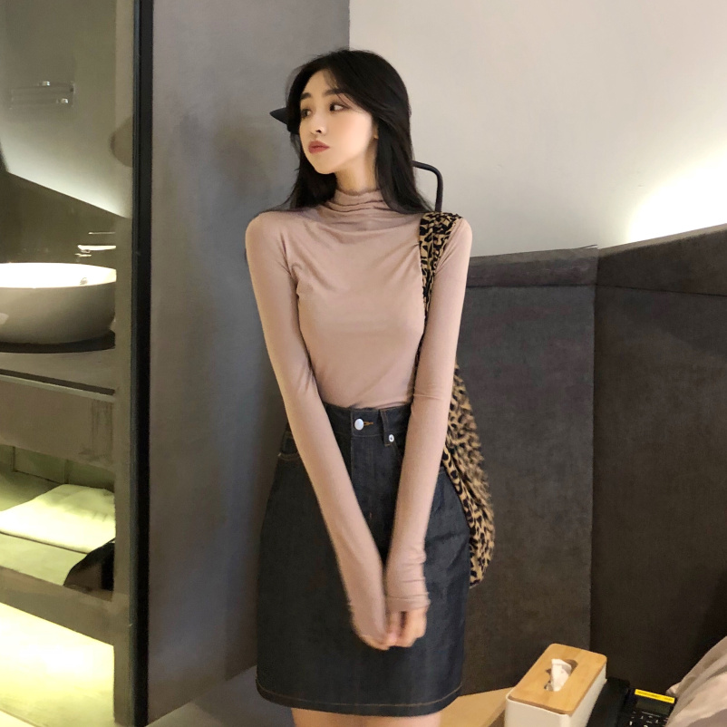 初秋新款女上衣韓版時尚chic基礎款百搭顯瘦高領純色打底衫t恤女