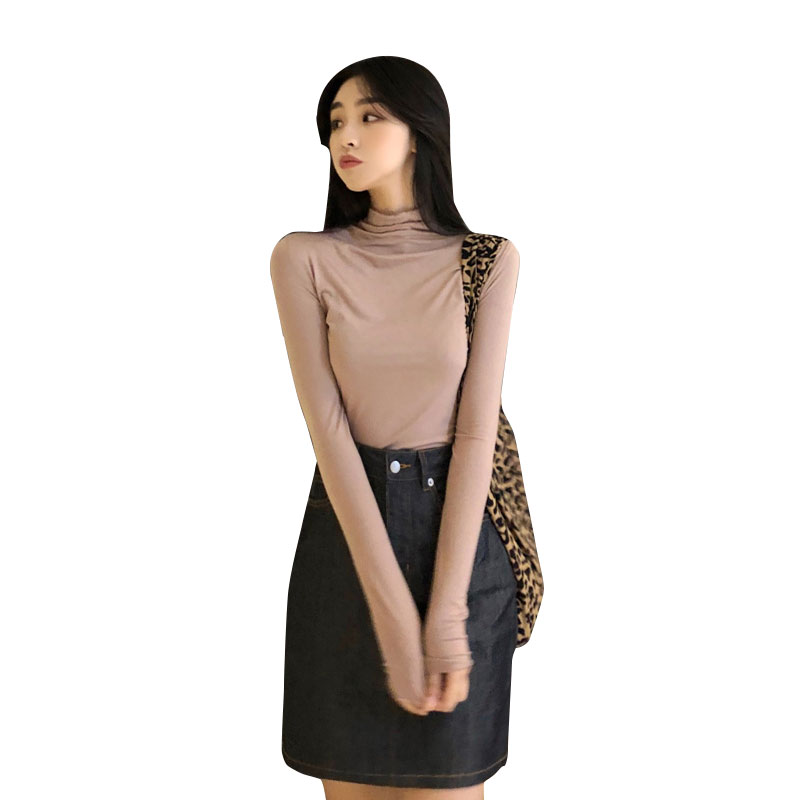 秋裝女2018新款基礎打底衫韓版修身顯瘦純色簡約長袖半高領T恤衫