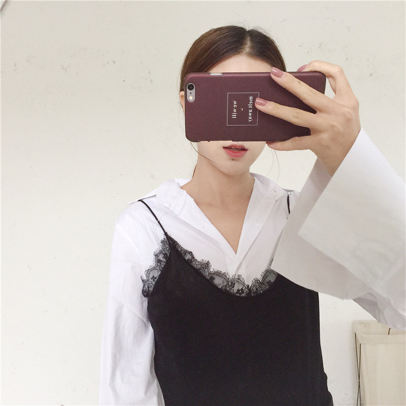 韓國chic春裝打底衫蕾絲花邊拼接V領百搭絲絨吊帶小背心女