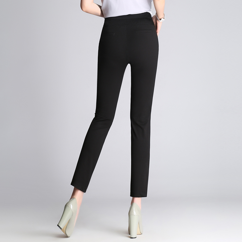 / 春夏松緊腰修身打底褲女外穿長褲彈力黑色高腰大碼九分小腳鉛筆褲