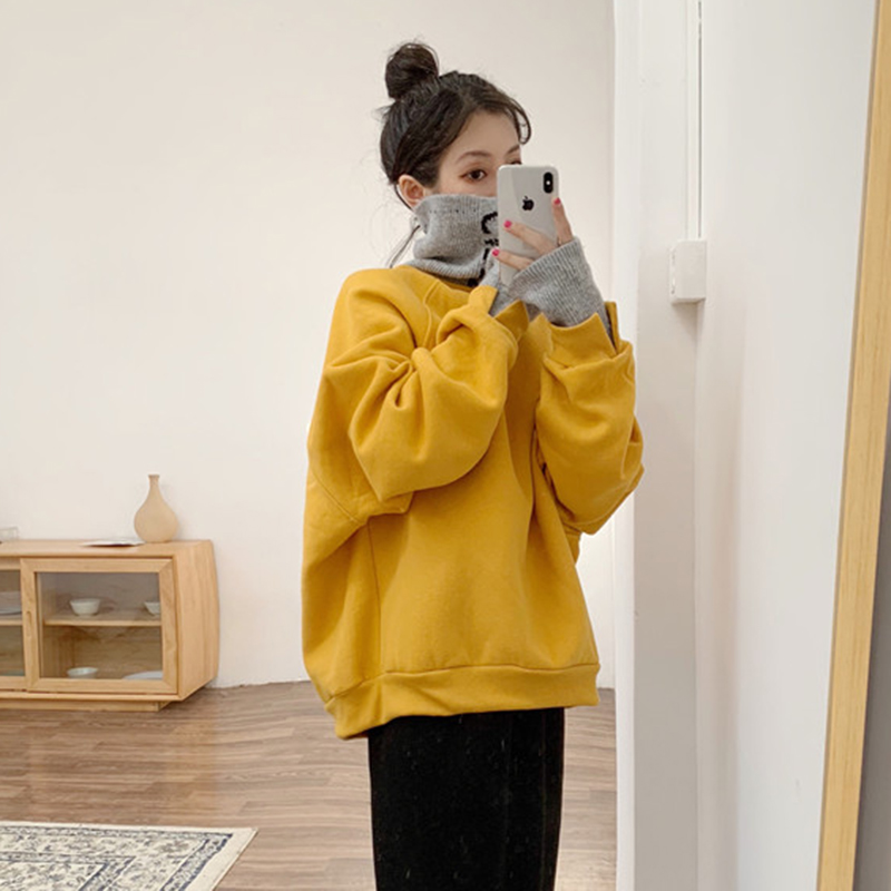 / 女冬裝2018新款寬松加絨套頭衛衣假兩件字母針織拼接高領撞色外套